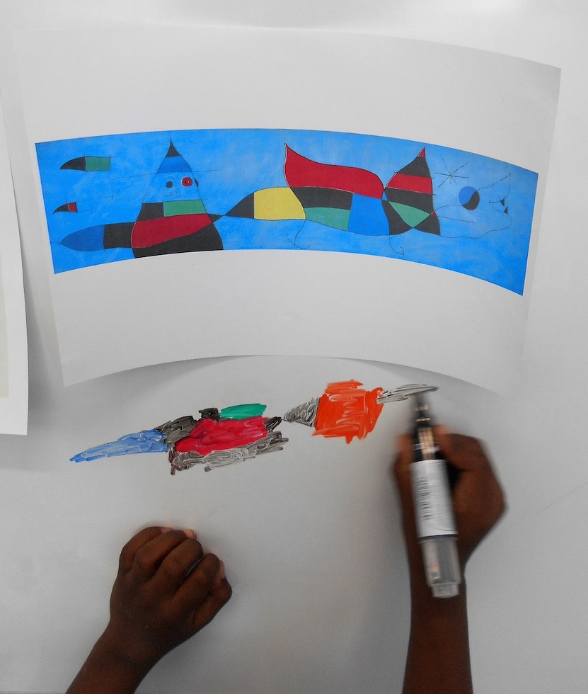 Οι μαθητές και οι μαθήτριες της β’ Δημοτικού του τμήματος Ισπανικών ήρθαν σε επαφή με πίνακες των Ισπανών ζωγράφων Χουάν Μιρό και Πάμπλο Πικάσσο. Τα παιδιά παρατήρησαν φιγούρες ζώων και αφηρημένες μορφές και στη συνέχεια δημιούργησαν δικές τους ζωγραφιές και κολλάζ χρησιμοποιώντας στοιχεία από την τεχνική των δύο ζωγράφων.