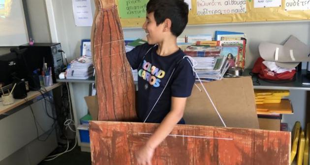 Οι μαθητές και μαθήτριες του τμήματος Γαλλικών της δ' Δημοτικού, στο οποίο διδάσκει η Δ. Τζαννετάκη, με αφορμή την ανάγνωση του βιβλίου “Mamie Pétronille et les enfants vikings”, προετοίμασαν ένα θεατρικό δρώμενο βασισμένο στους διαλόγους και τα κείμενα του βιβλίου. Τα παιδιά ανταποκρίθηκαν με ενθουσιασμό, έφτιαξαν αξεσουάρ και κοστούμια χρησιμοποιώντας απλά υλικά και πήραν μια μικρή γεύση με τη δραματουργία στα γαλλικά.