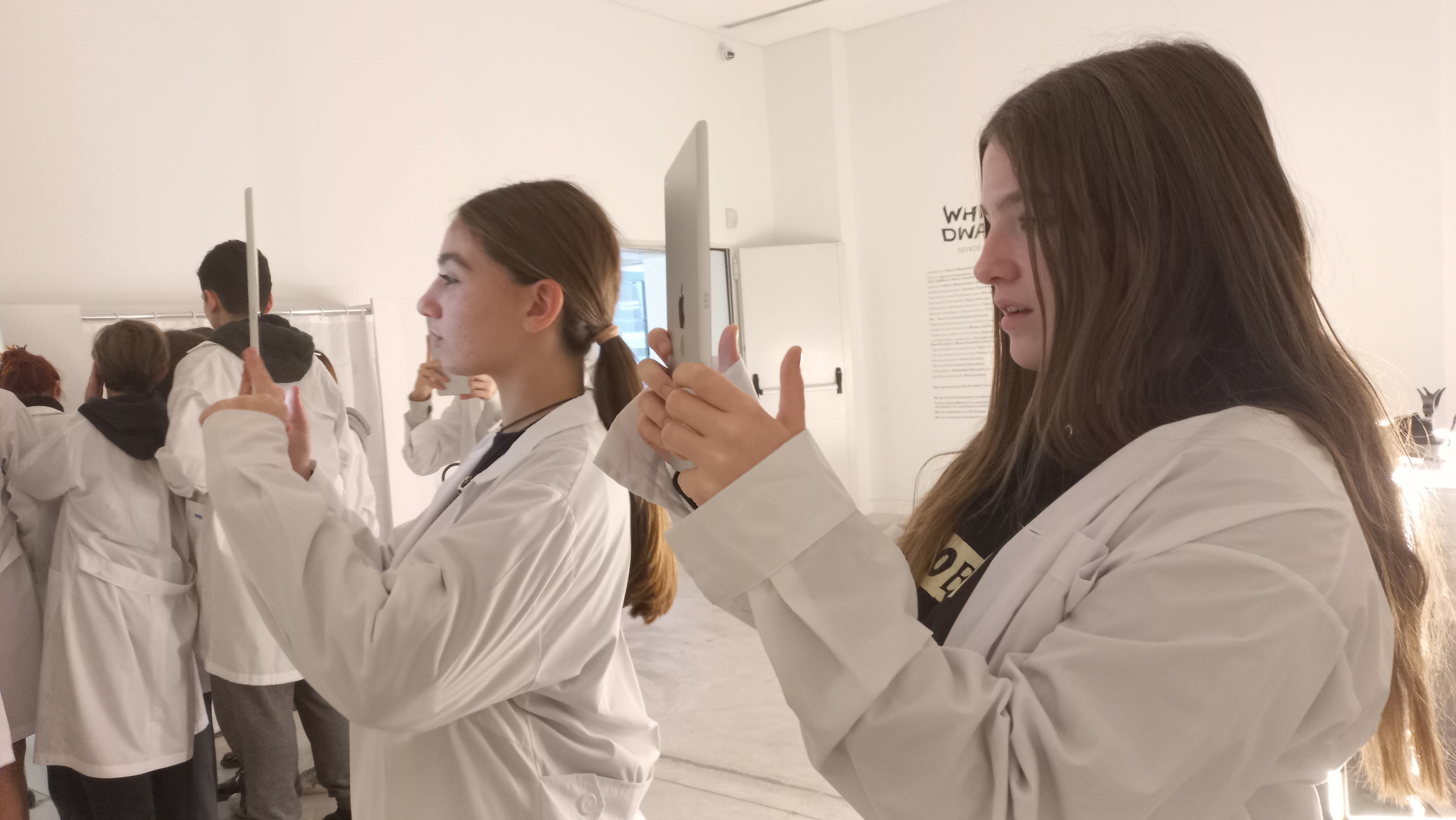 Οι μαθητές και οι μαθήτριες του τμήματος β2 Γυμνασίου παρακολούθησαν τον «Λευκό Νάνο» (White Dwarf), μία διαδραστική εγκατάσταση εικονικής πραγματικότητας (VR), στο Μουσείο Μπενάκη. Στο έργο της Γιολάντας Μαρκοπούλου παρουσιάζεται, με όρους εικονικής πραγματικότητας, ένα κομμάτι της ιστορίας της ανακάλυψης της πρώτης ατομικής βόμβας από τον φυσικό J. Robert Oppenheimer. Η ιστορία του «πατέρα της ατομικής βόμβας» πλέκεται με την ιστορία της νεαρής Sadako Sasaki, θύματος του βομβαρδισμού της Χιροσίμα. Οι επιστημονικές εξελίξεις και η εξερεύνηση του διαστήματος αντιπαραβάλλονται με την υπόσχεση του μικρού κοριτσιού για ειρήνη στον απόηχο του Β' Παγκοσμίου Πολέμου.
