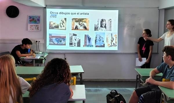Τις δύο τελευταίες εβδομάδες των μαθημάτων τον Μάιο, οι μαθητές και οι μαθήτριες της Α’ Γυμνασίου των δύο τμημάτων των Ισπανικών παρουσίασαν τις εργασίες τους σε σχέση με την τέχνη του δρόμου, σε μορφή power point. Με αφορμή κεφάλαιο του βιβλίου και λεξιλόγιο σχετικό με την πόλη, τα παιδιά συζήτησαν σχετικά με το τι μπορεί να θεωρηθεί τέχνη, επέλεξαν καλλιτέχνες και γνωστά έργα από διαφορετικές χώρες και μίλησαν για τις εικόνες που βλέπουν και τα μηνύματα και συναισθήματα που αυτές μεταδίδουν σε σχέση με τα προβλήματα του σύγχρονου κόσμου. Μεταξύ των street artists που επέλεξαν ξεχωρίζουν οι Invader, Okuda San Miguel, Banksy, JR, INO, Zosen Bandido και Whils.