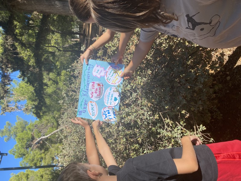 Στην τάξη των Γερμανικών αποφασίσαμε όλοι μαζί να ανανεώσουμε τους κανόνες που μας βοηθούν να είμαστε μια αγαπημένη και λειτουργική ομάδα. Θέλουμε το μάθημα να γίνεται σε ένα ευχάριστο και ήρεμο κλίμα, γι’ αυτό βοηθάμε ο ένας τον άλλον, συνεργαζόμαστε με καλή διάθεση και σεβόμαστε τους γύρω μας και τον χώρο του σχολείου. Με αυτό το συμβόλαιο δεσμευόμαστε να δημιουργήσουμε όλοι και όλες μαζί ένα περιβάλλον χαράς, συνεργασίας και αλληλοσεβασμού, ώστε να μαθαίνουμε καλύτερα και να περνάμε όμορφα στην τάξη μας.