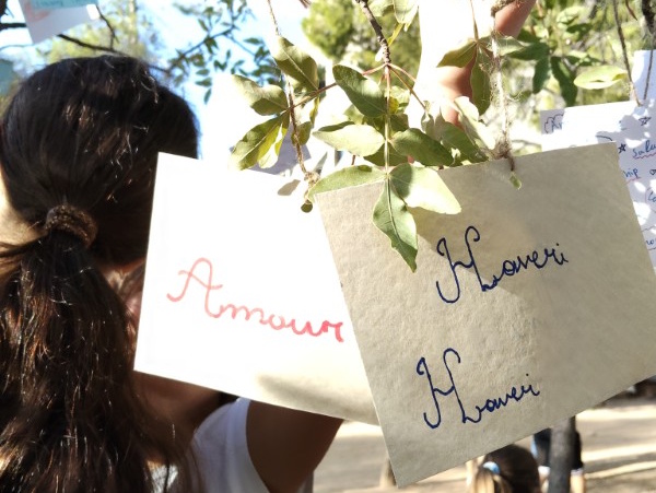 Με την ευκαιρία της Ευρωπαϊκής Ημέρας Γλωσσών οι μαθητές και οι μαθήτριες του Τμήματος Γαλλικών έγραψαν σε μικρές ετικέτες λέξεις στα Ελληνικά, Γαλλικά, Ιταλικά, Ισπανικά, Γερμανικά και στόλισαν το δέντρο των γλωσσών στο δασάκι του Σχολείου μας. Με αυτό τον τρόπο θέλησαν να δείξουν στους συμμαθητές τους πόσο σπουδαίο είναι να γνωρίζεις μια ξένη γλώσσα και να υποστηρίξουν, με τον τρόπο τους, την προώθηση της γλωσσικής κληρονομιάς της Ευρώπης.