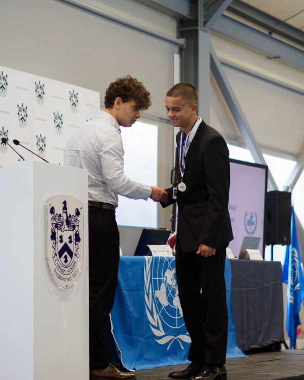 Οι Έλλη Διακάκη (ΛΑ), Σοφία Κωτσιοπούλου (ΛΑ) και Βαγγέλης Χατήρας (IB1) διακρίθηκαν για τις επιδόσεις τους στο Environmental Committee με εύφημο μνεία, ενώ η Αλεξάνδρα Πιπεράκη (ΙΒ1) προήδρευσε ως Main Chair σε αυτό!