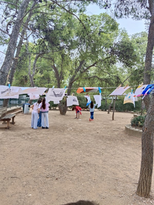 Έδωσαν ραντεβού στο δασάκι του σχολείου μας και κρέμασαν τις ζωγραφιές τους με θέμα: «Αντανάκλαση φωτός, μέρα και νύχτα». Τα παιδιά μοιράστηκαν, αντάλλαξαν ιδέες, παρουσίασαν και ένωσαν τα έργα τους σε μια μοναδική δημιουργία γεμάτη φως, χρώμα, φθινοπωρινές σκιές και λάμψεις.