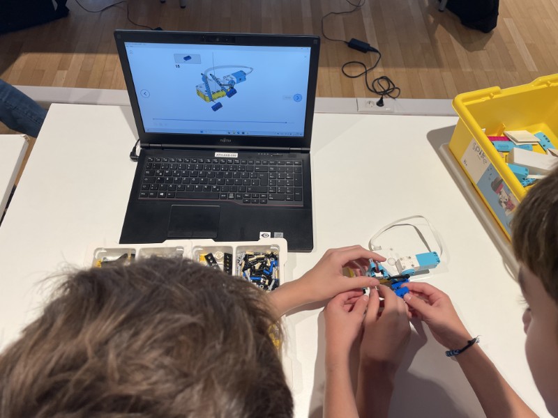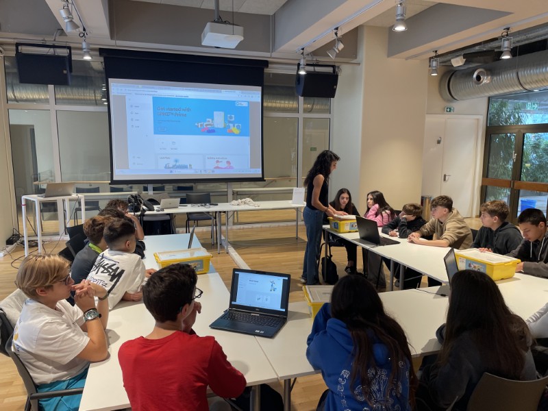 Οι μαθητές και μαθήτριες των Γερμανικών της Β΄ Γυμνασίου είχαν την ευκαιρία να συμμετάσχουν σε ένα πρωτότυπο βιωματικό εργαστήριο του Ινστιτούτου Γκαίτε με τίτλο «MINT Makers», το οποίο συνδύαζε δημιουργικά τη ρομποτική, τον προγραμματισμό και τη φαντασία! Κατά τη διάρκεια του workshop, η τάξη εργάστηκε σε ομάδες, χρησιμοποιώντας το εκπαιδευτικό σετ LEGO® Spike Prime, μέσα από το οποίο ανακάλυψαν πώς η τεχνολογία μπορεί να γίνει εργαλείο δημιουργίας και μάθησης. Κατασκεύασαν ρομπότ, τα εξόπλισαν με αισθητήρες και κινητήρες και τα προγραμμάτισαν με μια απλή και φιλική γλώσσα προγραμματισμού τύπου drag-and-drop. Μέσα από αυτή τη διαδικασία, τα παιδιά γνώρισαν βασικές αρχές προγραμματισμού, ρομποτικής και STEM (Μαθηματικά, Πληροφορική, Φυσικές Επιστήμες, Τεχνολογία), ενώ παράλληλα ανέπτυξαν δεξιότητες ομαδικής συνεργασίας, επίλυσης προβλημάτων και δημιουργικής σκέψης. Και όλα αυτά στα Γερμανικά!