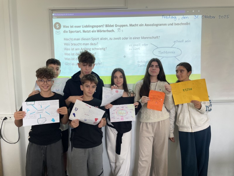 Οι μαθητές και οι μαθήτριες της Β΄ Γυμνασίου συμμετείχαν σε μια δημιουργική δράση στο πλαίσιο του μαθήματος των Γερμανικών, με θέμα «Ποιο είναι το αγαπημένο σου άθλημα;». Κάθε μαθητής εργάστηκε ατομικά στο σπίτι και ετοίμασε ένα mind map σε χαρτόνι, παρουσιάζοντας το αγαπημένο του άθλημα με τη βοήθεια καθοδηγητικών ερωτήσεων. Μέσα από αυτή τη δραστηριότητα, οι μαθητές είχαν την ευκαιρία να ερευνήσουν, να οργανώσουν δημιουργικά τις σκέψεις τους και να εκφράσουν τα ενδιαφέροντά τους στα Γερμανικά. Η παρουσίαση των mind maps στην τάξη αποτέλεσε μια ευκαιρία ανταλλαγής ιδεών και ενεργής συμμετοχής, ενισχύοντας παράλληλα τη χαρά της μάθησης και τη συνεργατικότητα.