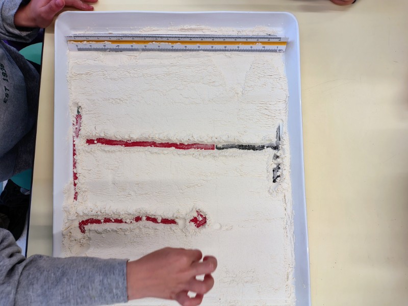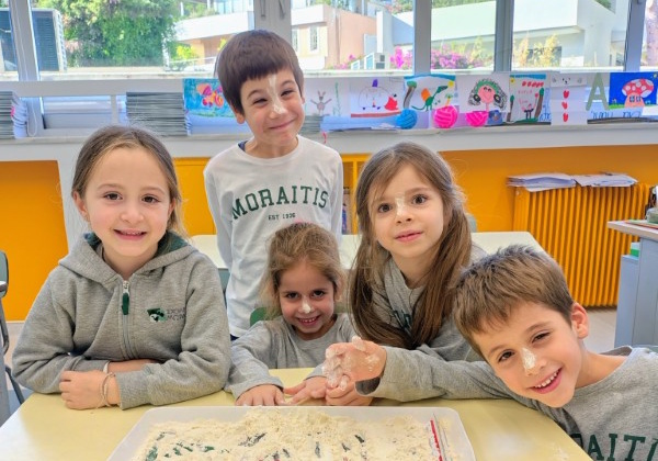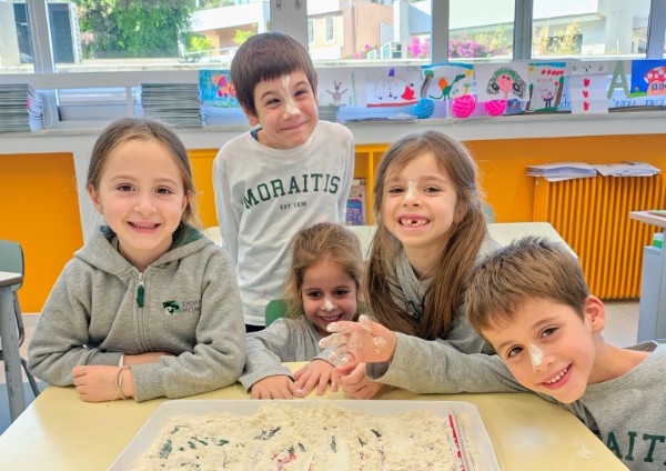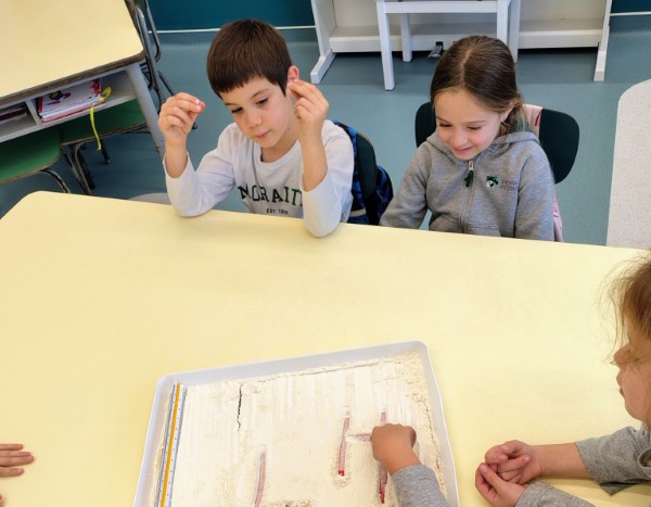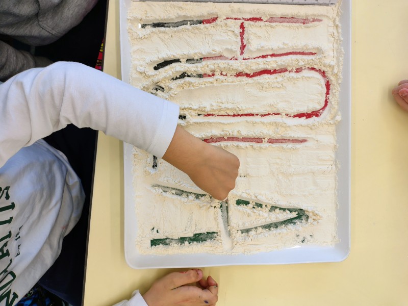 Στα ισπανικά, η φράση "meterse en harina" (κυριολεκτικά "μπαίνουμε στο αλεύρι") σημαίνει σηκώσαμε τα μανίκια και πιάσαμε δουλειά. Αυτό ακριβώς κάναμε στο εργαστήριο Ισπανικών της α' Δημοτικού, γράφοντας με το δάχτυλο το αλφάβητο στο αλεύρι. Ένας άλλος τρόπος γραφής για περισσότερη εξοικείωση με τα γράμματα.