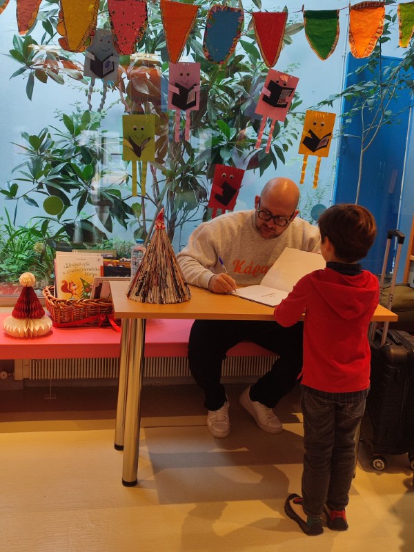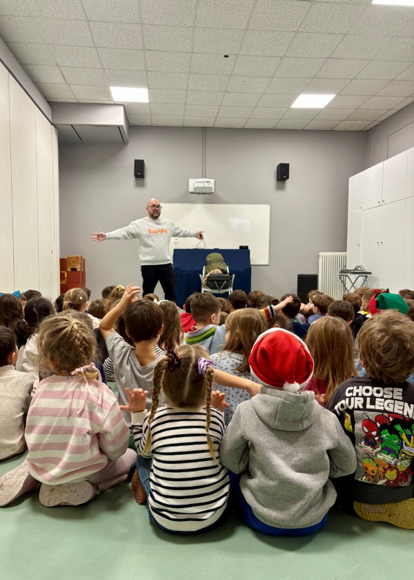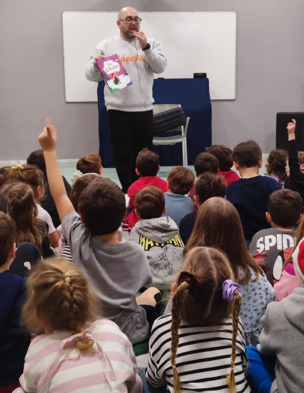Τα παιδιά του Προνηπίου παρακολούθησαν μία ενδιαφέρουσα χριστουγεννιάτικη βιβλιοπαρουσίαση. Ο συγγραφέας και παιδοψυχολόγος κ. Ιωάννης Γλωσσόπουλος επισκέφτηκε το σχολείο μας για να μας παρουσιάσει το νέο του βιβλίο, «Γίνε Αϊ-Βασίλης», των εκδόσεων Διόπτρα. Μέσα από ένα πλούσιο μουσικοθεατρικό παιχνίδι, με τη χρήση μουσικής και μίας μεγάλης κούκλας, μετέφερε στα παιδιά με πολύ ζωντανό και ελκυστικό τρόπο την ιστορία του μικρού Ορφέα, που ήθελε να γίνει Αϊ-Βασίλης και να πάει ο ίδιος στον Βόρειο Πόλο. Ήταν μια ευκαιρία για τα παιδιά να έρθουν σε επαφή με τη χαρά που μας δίνει η προσφορά αγάπης και χαράς στους άλλους.
