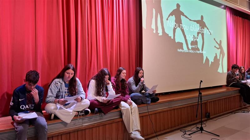 Τα παιδιά του τμήματος γ2 παρουσίασαν στο Πρωινό τους έξι ιστορίες παιδιών και εφήβων -της Malala Yousafzai, της Greta Thunberg, της Bana Alabed, του Boyan Slat, του William Kamkwamba και του Ryan Hreljac- που με το θάρρος, την επιμονή και την πίστη τους κατάφεραν να αφήσουν το αποτύπωμά τους στον κόσμο και να επηρεάσουν θετικά τις ζωές πολλών ανθρώπων. Οι ιστορίες αυτές υπενθύμισαν ότι η αλλαγή δεν απαιτεί ηλικία, χρήματα ή εξουσία, αλλά θέληση, όνειρο και θάρρος να γίνει το πρώτο βήμα. Καθένας και καθεμία από αυτούς τους νέους είδε ένα πρόβλημα και αποφάσισε να μην το προσπεράσει. Κι έτσι, ο κόσμος έγινε λίγο καλύτερος.