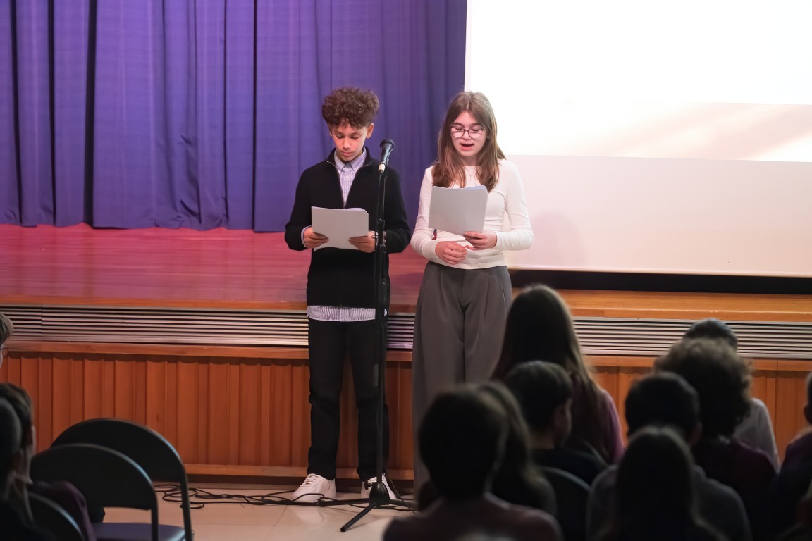 Ιδιαίτερη στιγμή αποτέλεσε η μουσική παρέμβαση στο πιάνο, όπου έργα του Στράους ερμήνευσαν η Αναστασία Δαλκίδου από τη Β’ Γυμνασίου και ο Δημήτρης Ζανέλης από την Α’ Γυμνασίου.