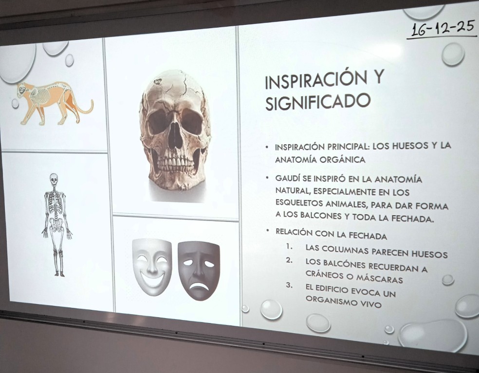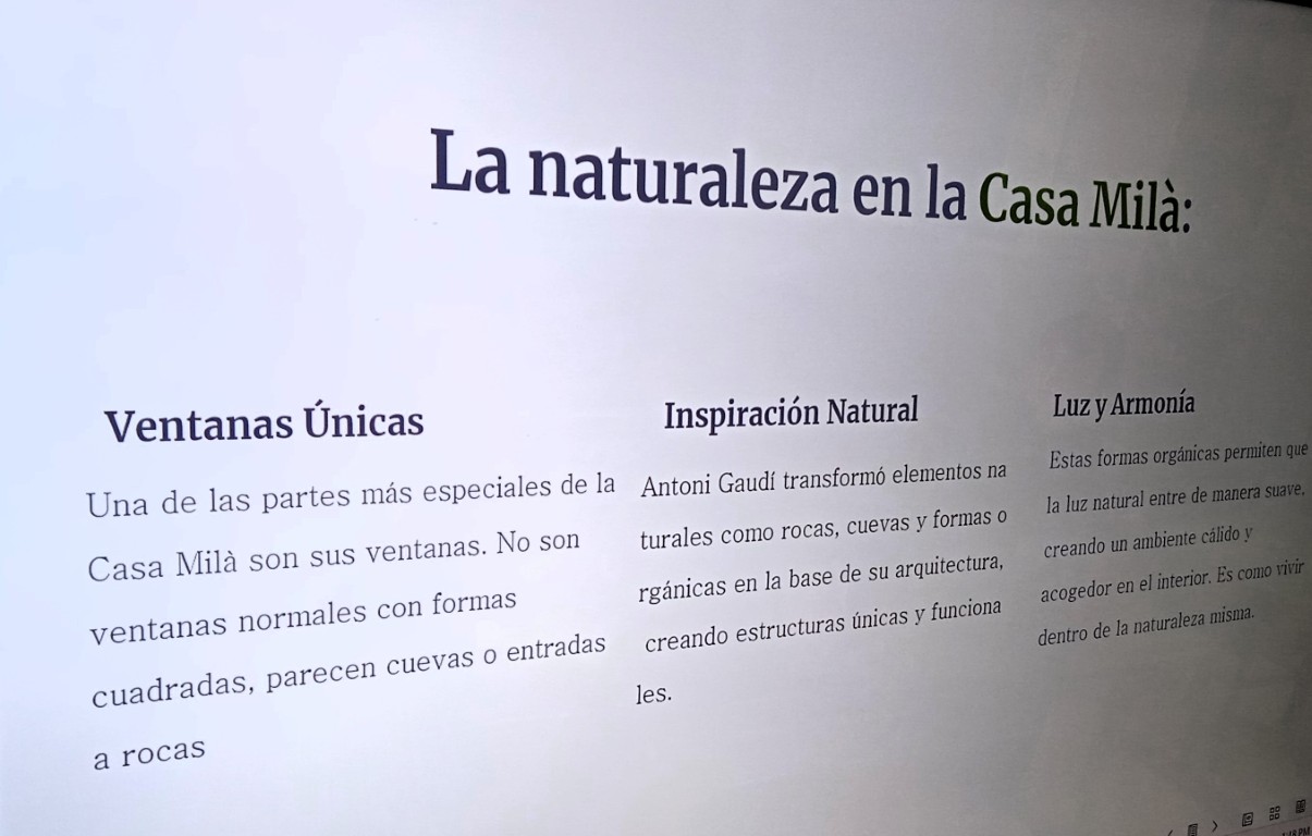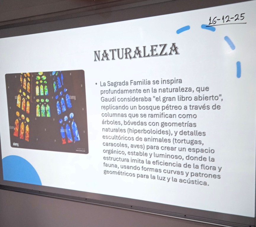 Τα παιδιά των τμημάτων Ισπανικών της β’ Γυμνασίου στο πλαίσιο της εξάσκησής τους στη χρήση της ισπανικής γλώσσας ήρθαν σε επαφή με τη ζωή και το έργο του γνωστού αρχιτέκτονα Antoni Gaudí. Οι μαθητές και οι μαθήτριες εντυπωσιάστηκαν από το πολυσχιδές έργο και το απόλυτα προσωπικό ύφος του Καταλανού αρχιτέκτονα και αφού επέλεξαν μερικές από τις διασημότερες κατασκευές του, ετοίμασαν εργασίες σε μορφή powerpoint, τις οποίες και παρουσίασαν στην τάξη την Τρίτη 16 Δεκεμβρίου, εστιάζοντας στη σημασία της φύσης ως πηγής έμπνευσης.