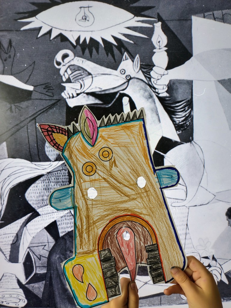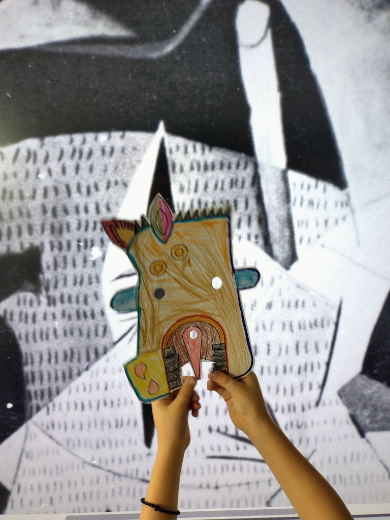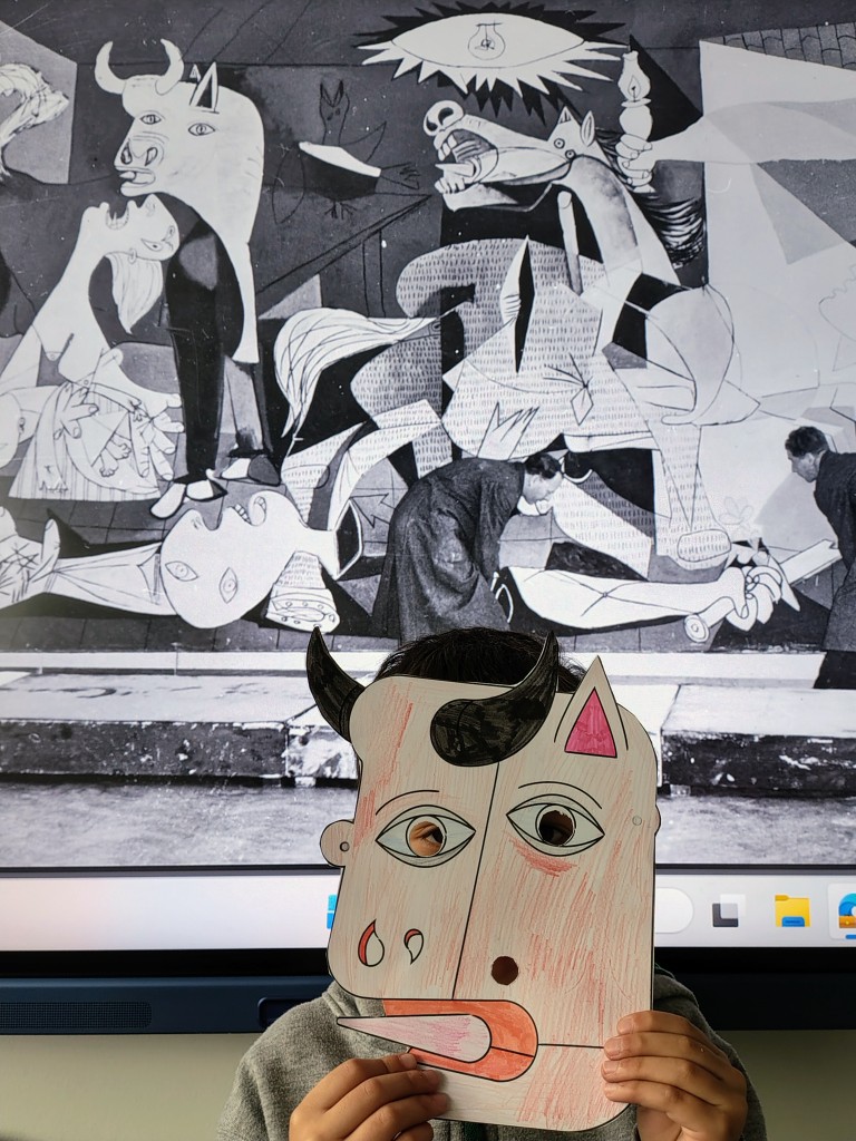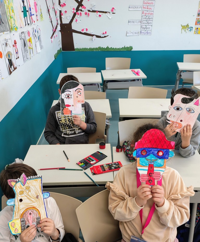 Κατά τη διάρκεια του Φεβρουαρίου, τα παιδιά του εργαστηρίου Ισπανικών της Β' δημοτικού ήρθαν σε επαφή με το έργο του Ισπανού ζωγράφου Πάμπλο Πικάσο. Οι κυβιστικές μορφές, οι φιγούρες ανθρώπων και ζώων σε πίνακες ή σχέδια του ζωγράφου έγιναν αντικείμενο παρατήρησης, ενώ τα παιδιά σχολίασαν τις διαφορετικές στην τεχνική και την ατμόσφαιρα κάθε έργου. Τα μαθήματα αυτά έκλεισαν με μια χειροτεχνία όπου τα παιδιά έφτιαξαν μάσκες εμπνευσμένες από το έργο του.