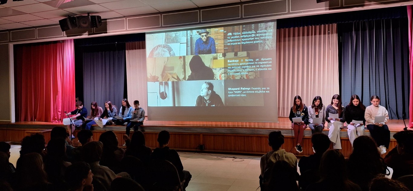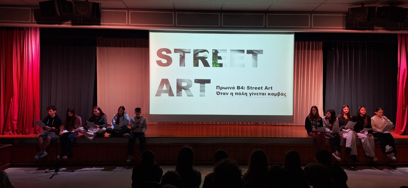 Το β4 παρουσίασε το Πρωινό του με θέμα την τέχνη του δρόμου (street art), μια ζωντανή και δυναμική μορφή σύγχρονης τέχνης που ξεπερνά τα όρια των μουσείων και των γκαλερί και φέρνει την καλλιτεχνική έκφραση στον δημόσιο χώρο και στην καθημερινότητα των ανθρώπων. Μέσα από εικόνες, παραδείγματα και σύντομες παρουσιάσεις, οι μαθητές και οι μαθήτριες ανέδειξαν τον τρόπο με τον οποίο η street art μεταμορφώνει τους τοίχους της πόλης σε καμβάδες δημιουργίας, δίνοντας φωνή σε καλλιτέχνες και κοινωνικές ομάδες.