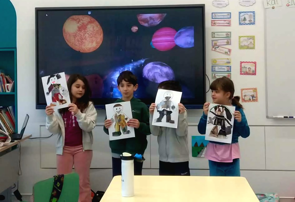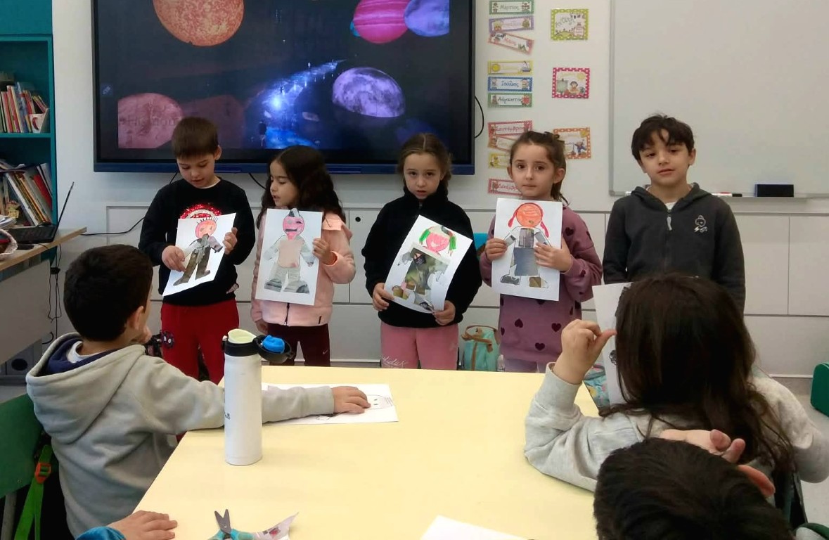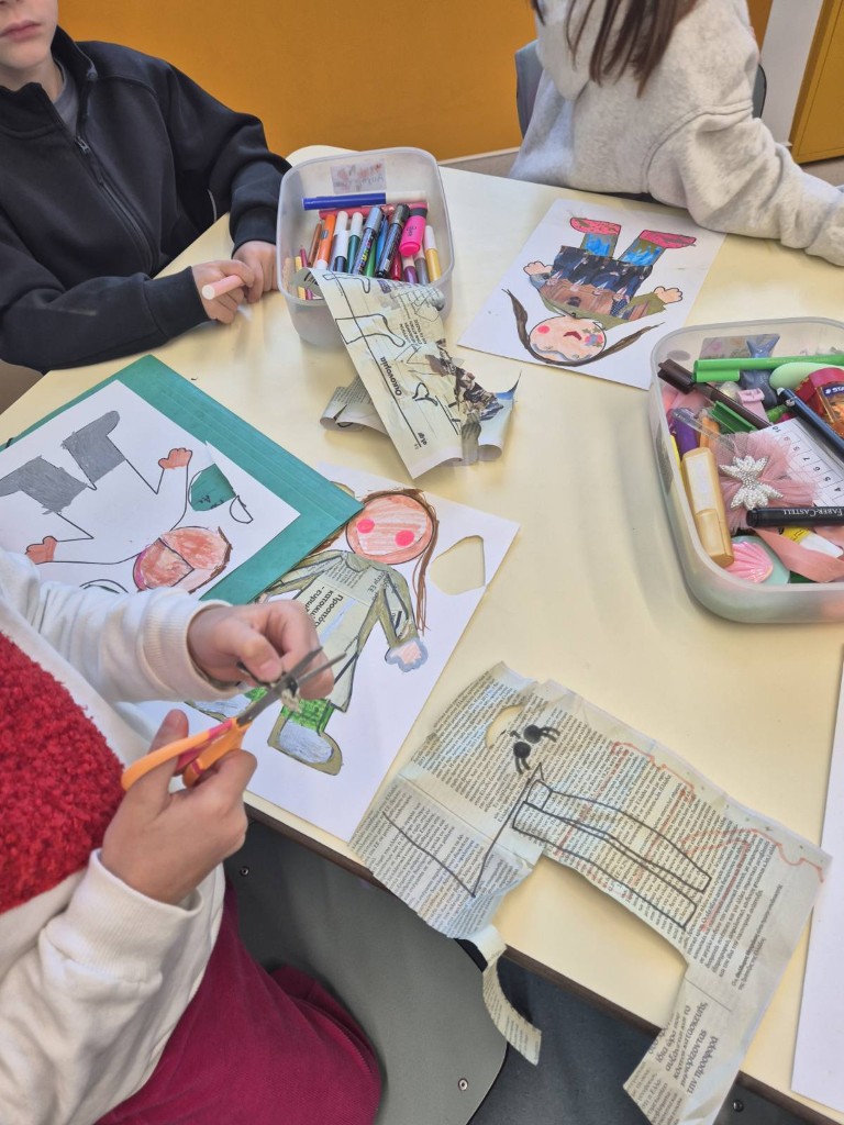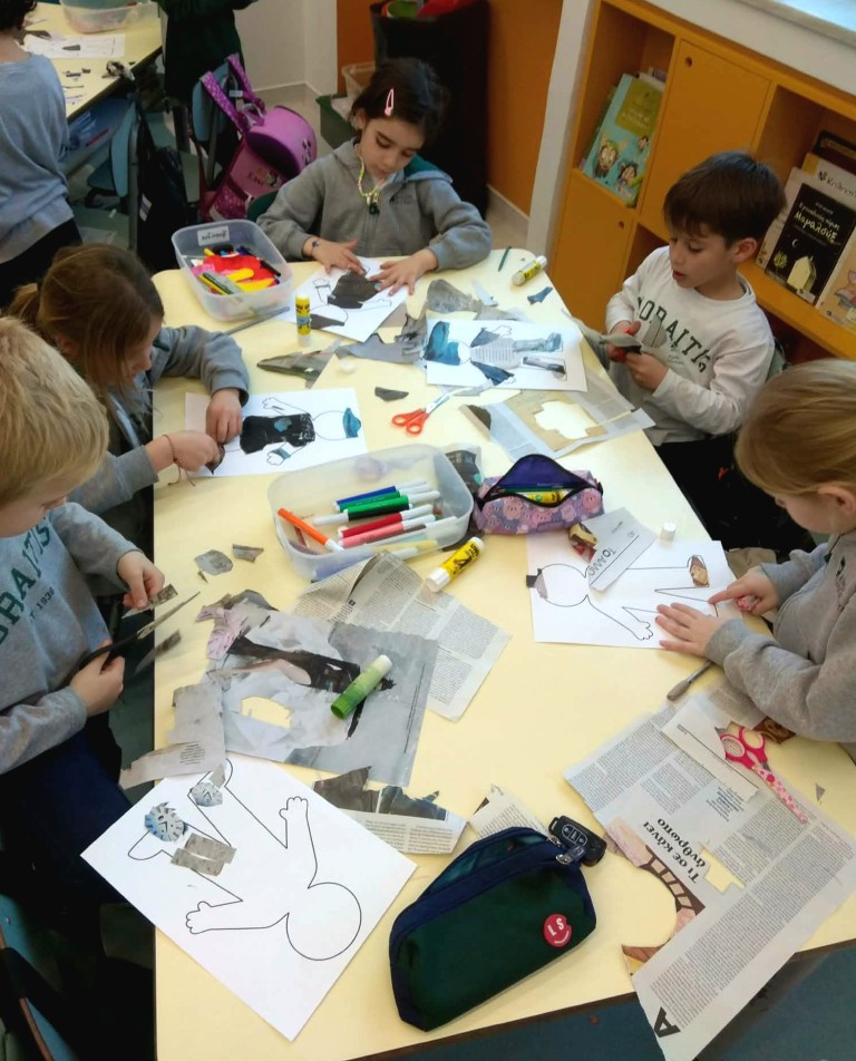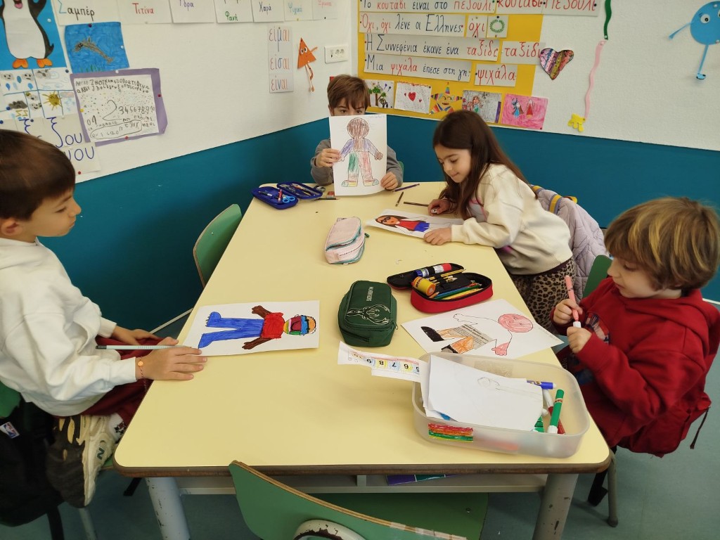 Στο μάθημα των Αγγλικών της Α΄Δημοτικού εμπνευστήκαμε από την ενότητα του βιβλίου μας που μιλάει για τα ρούχα και συζητήσαμε πολύ γύρω από το θέμα αυτό. Επικεντρωθήκαμε στα ρούχα που φοράμε στην καθημερινότητά μας, κατά τη διάρκεια της χειμερινής αλλά και της θερινής περιόδου. Έχοντας ως στόχο τη βιωματική μάθηση και την καλλιέργεια της φαντασίας σε συνδυασμό με την ανάκληση και τη χρήση ήδη γνωστού λεξιλογίου, συγκεντρώσαμε φωτογραφικό υλικό από περιοδικά και εφημερίδες και δημιουργήσαμε σε κολάζ τα δικά μας μοντέλα.