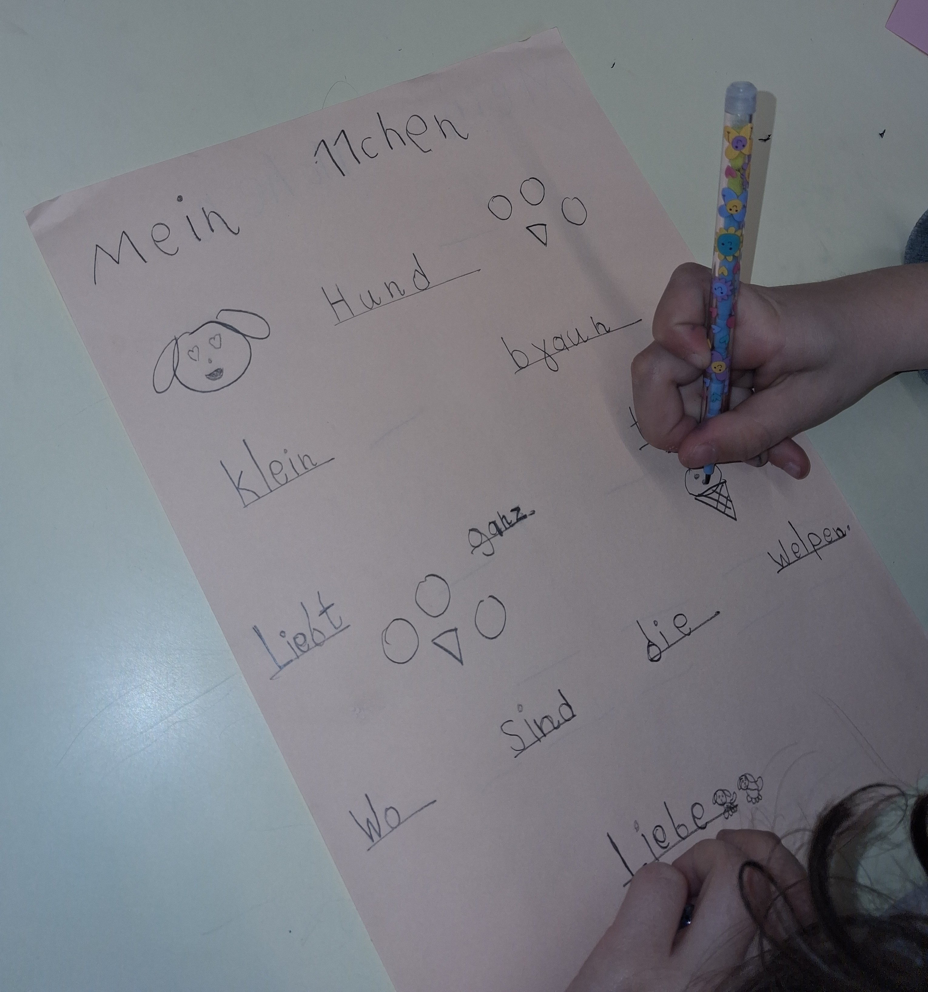 Στις 21 Μαρτίου, την Παγκόσμια Ημέρα ποίησης γράψαμε το πρώτο μας ποίημα στα Γερμανικά! Επιλέξαμε μια έννοια, τη ντύσαμε με όμορφα επίθετα, φτιάξαμε μια μικρή πρόταση, εκφράσαμε τα συναισθήματά μας και κλείσαμε με μια λέξη-μήνυμα. Στο τέλος, ζωγραφίσαμε και παρουσιάσαμε τα ποιήματά μας – και κάπως έτσι… γεννήθηκαν οι πρώτοι μικροί ποιητές!